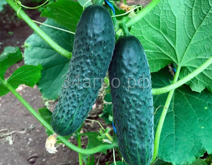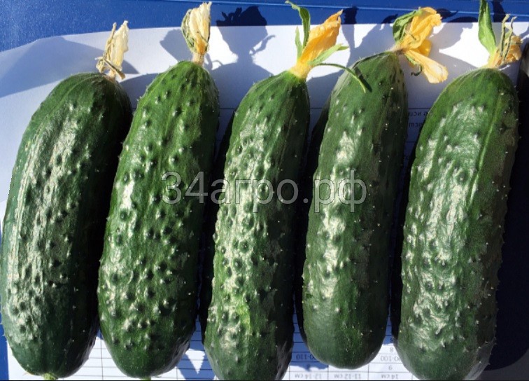 В междоузлие формируется по 2-4 плода, блестящие светлого цвета, с переходом от светлого к темному, с мраморностью, маленькой семенной камерой. Плоды 10-12 см, с ярко выраженными буграми, что не теряются при перерастании и при высоких температурах.