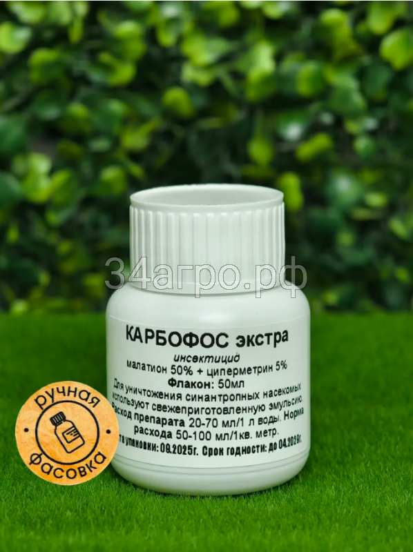 Карбофос Экстра — это не просто инсектицид усиленного действия нового поколения. Это мощная комбинация двух знаменитых действующих веществ (малатион 50% + циперметрин 5%), созданная для тотального уничтожения вредителей там, где другие препараты бессильны.